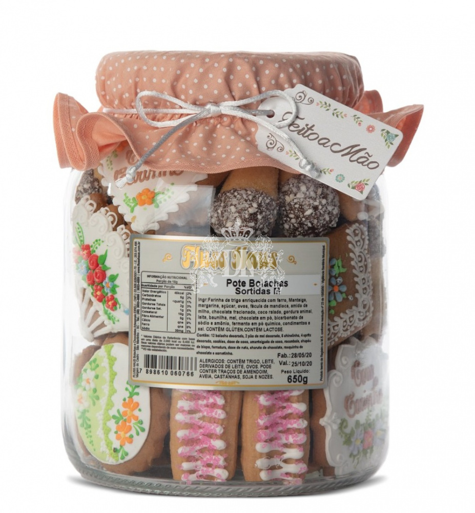 Um lindo pote com bolachas decoradas e nossas mais tradicionais biscoitos caseiros , diversos sabores em uma única embalagem. Você pode presentear aquela pessoa especial ou então decorar a sua cozinha.