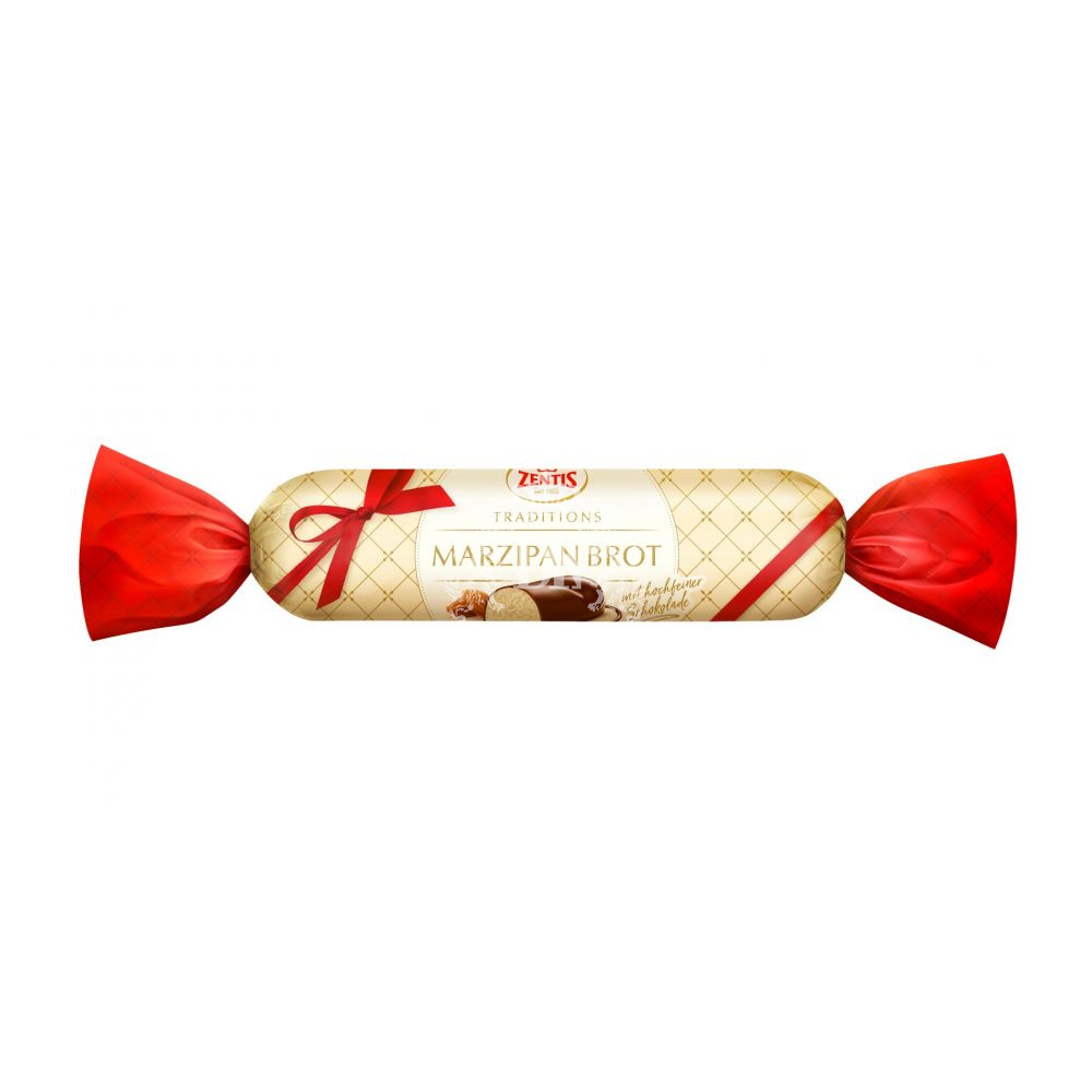O Marzipan ZENTIS é produzido com massa de amêndoas e açúcar e é coberto com chocolate puro, em formato de baguete.