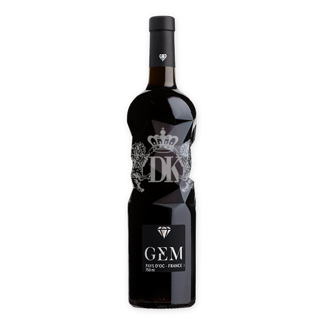 Grenache e Syrah do Vallèe de Herault, o GEM Rouge é um vinho elegante, com taninos aveludados. Harmoniza bem com os mais diferentes pratos devido ao seu bom corpo e acidez proporcionada pela Grenache. A garrafa tem aparência de um diamante lapidado dando mais elegância ao vinho. GEM nos leva ao mundo do luxo e das joias, perfeitamente simbolizado em forma de diamante.